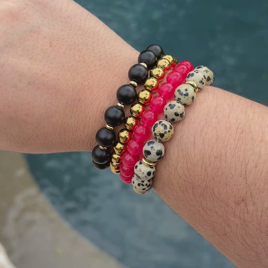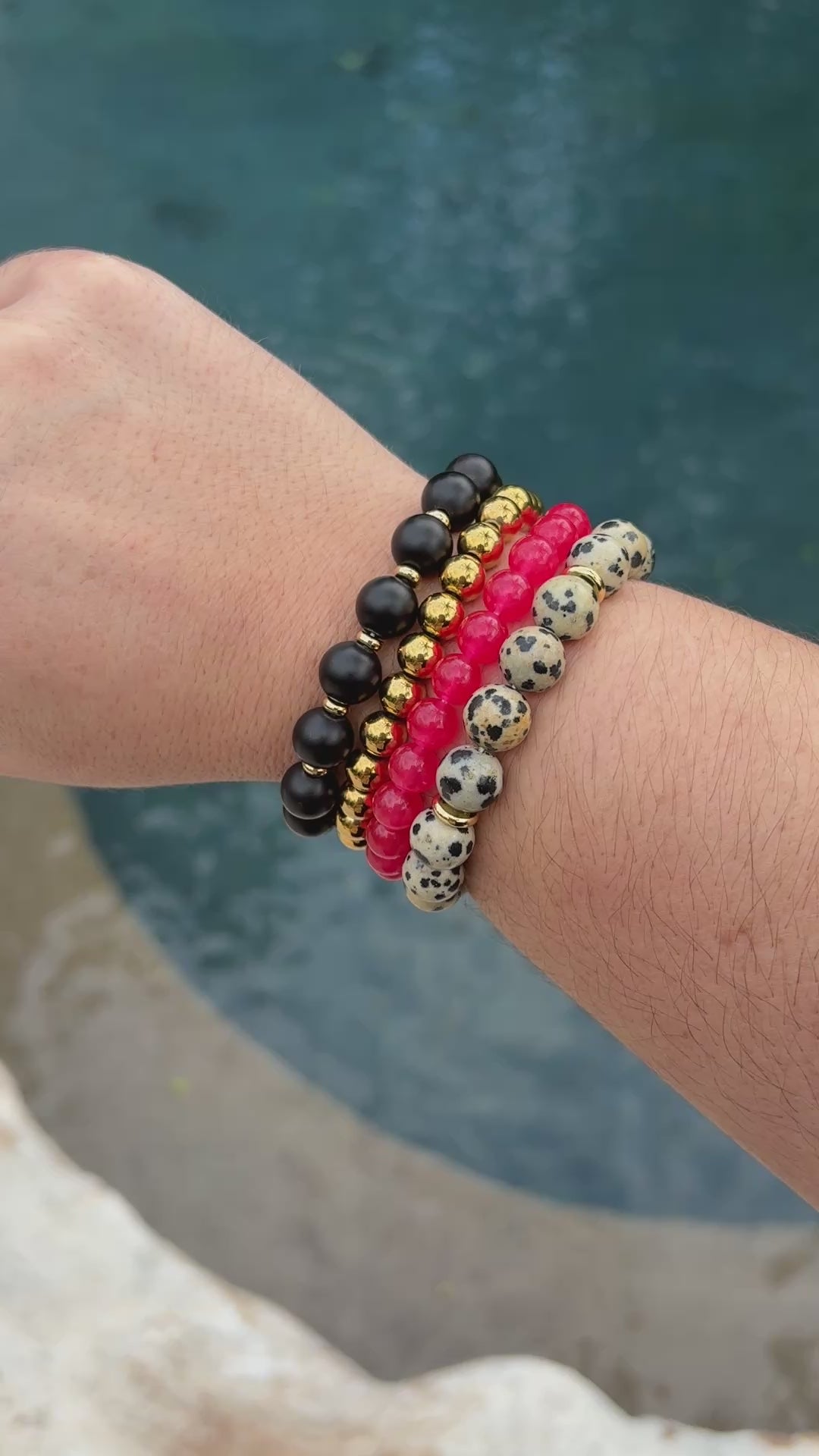 Black goes with everything, making this piece one you’ll reach for again and again. Onyx is known for its grounding energy and quiet strength, offering a sense of protection and calm. It’s classic on its own when all you need is something simple and strong, yet it stacks beautifully with any bracelet in your collection. The possibilities are endless, this is your anchor piece, ready to rotate with any look.