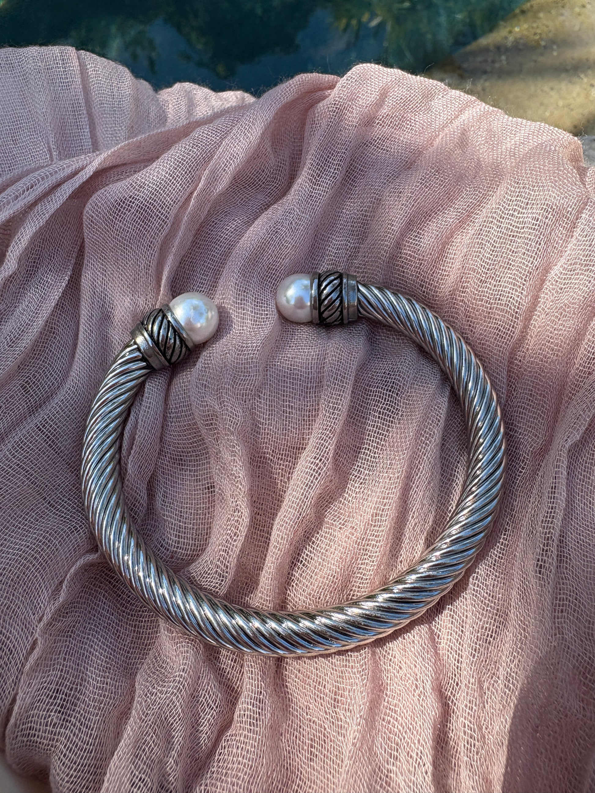 Chunky Cable Cuff with Pearl