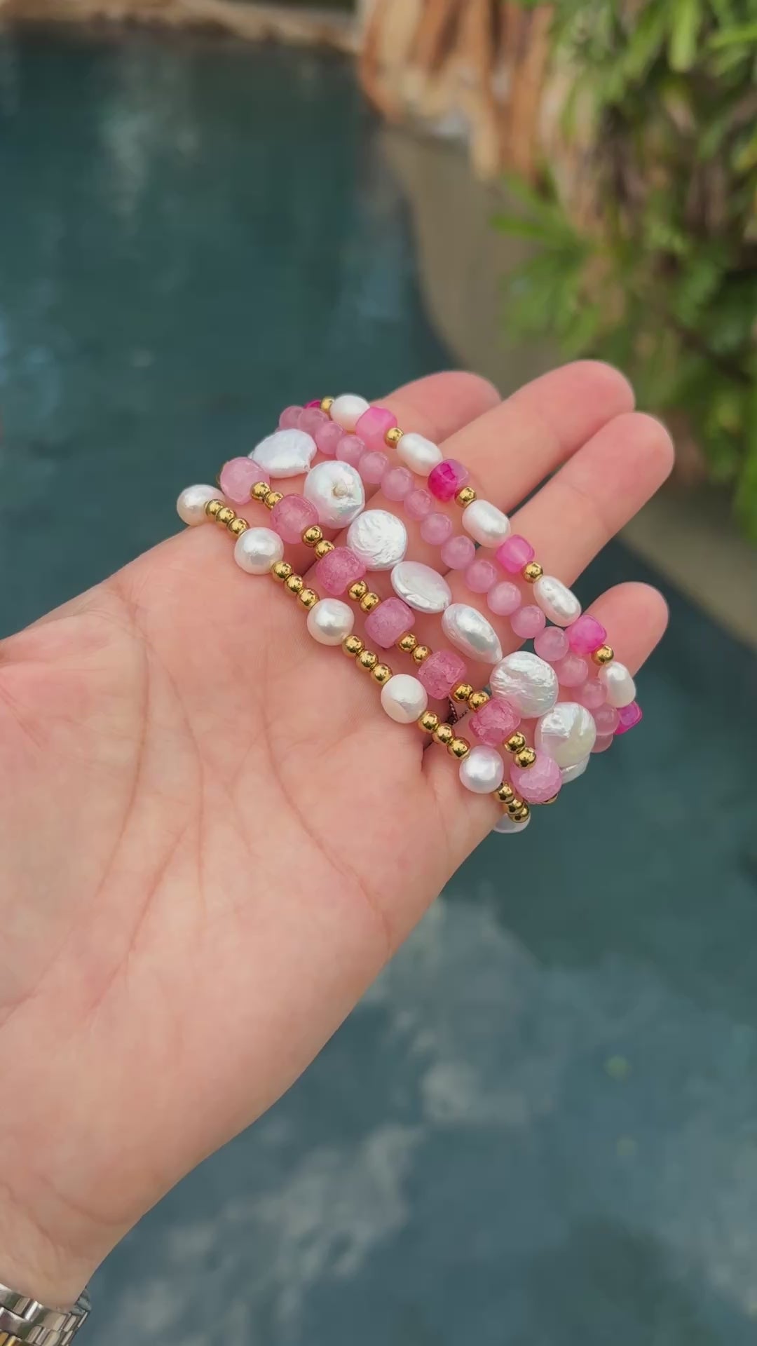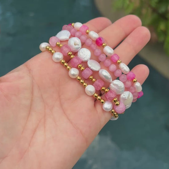 Material: Freshwater Pearls and gold plated PVD stainless steel, glass, agate