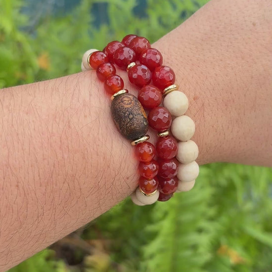 Carnelian and Fossil Jasper Bracelet
