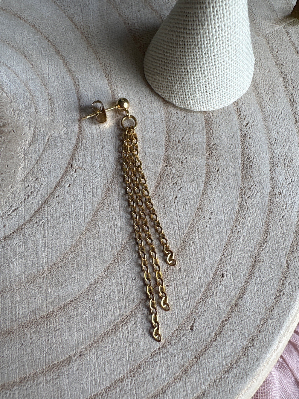 Made for the moments you want to feel a little extra. These gold chain flowy earrings bring soft movement and a bold, flirty touch to your look. Perfect for a night out, date night or anytime you want your jewelry to make the outfit.