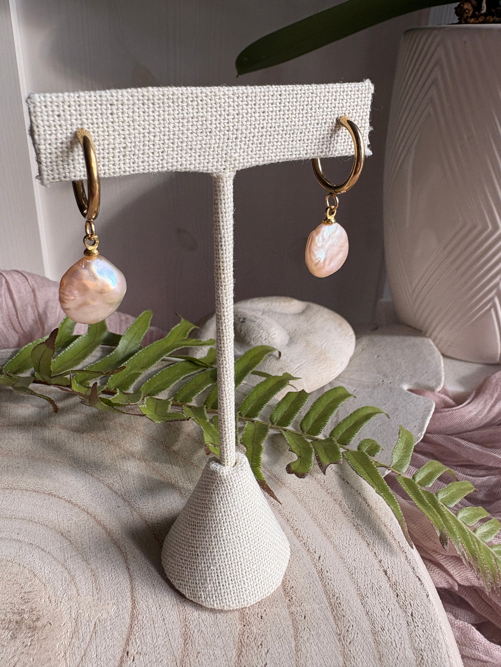 Care: Keep jewelry dry and away from water, perfumes, and lotions, as moisture and chemicals can cause finishes to fade and stones to lose their shine. Store pieces in a dry place and separate from harder jewelry. Wipe gently with a soft cloth if needed.