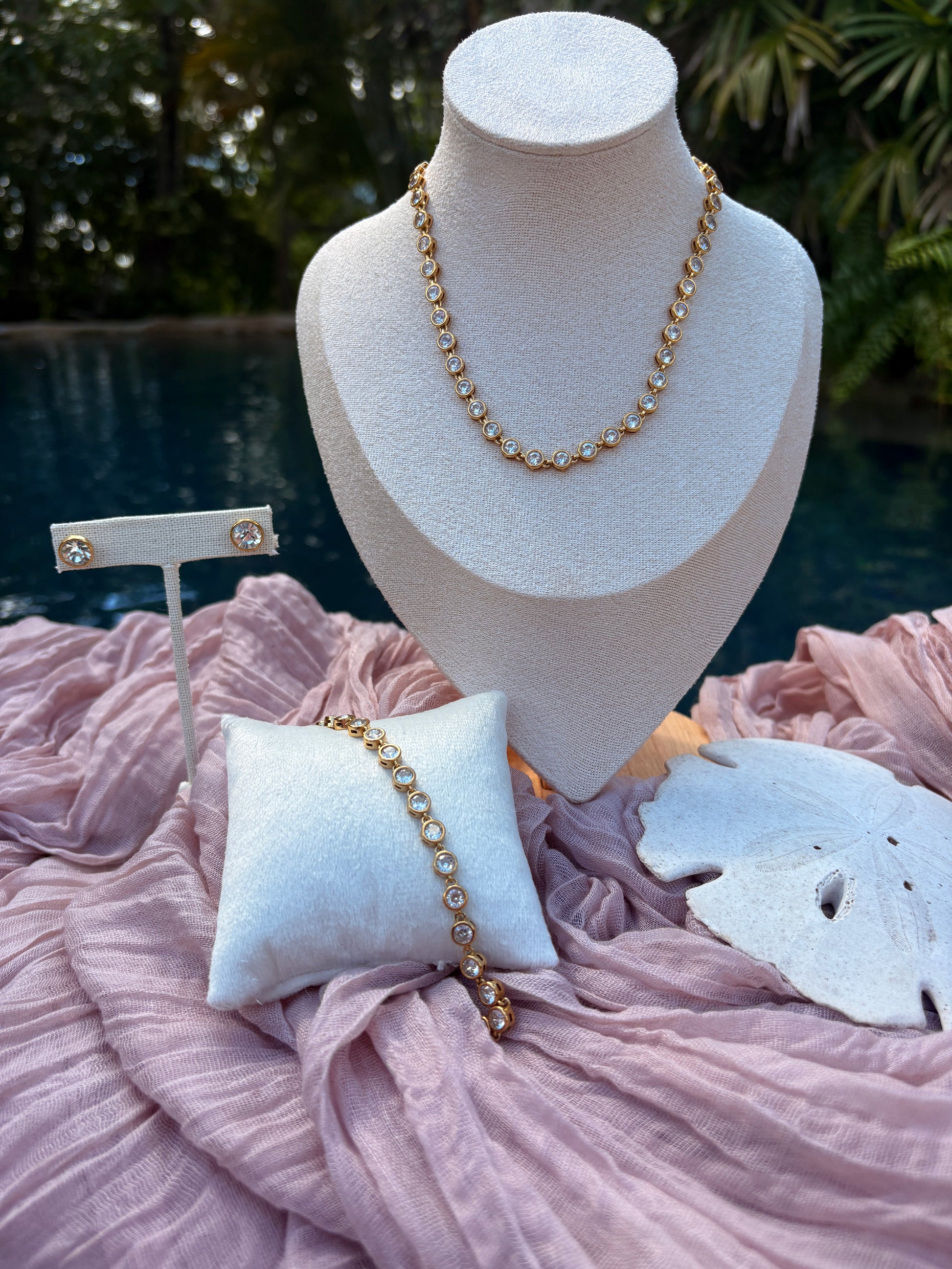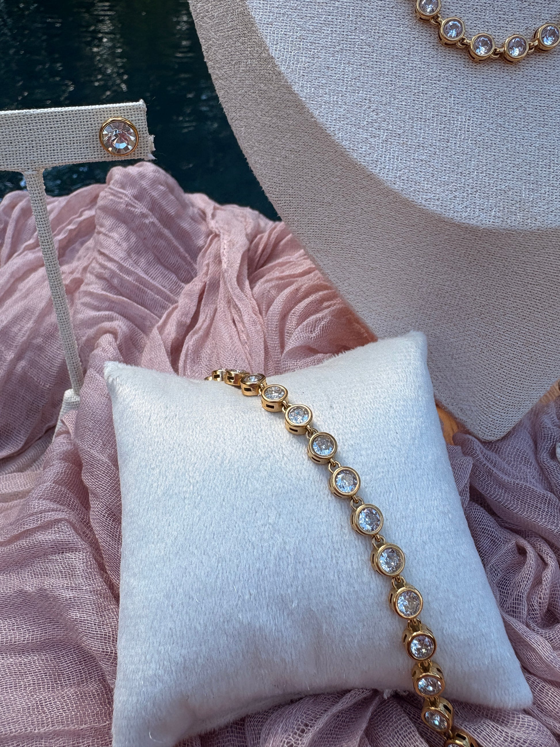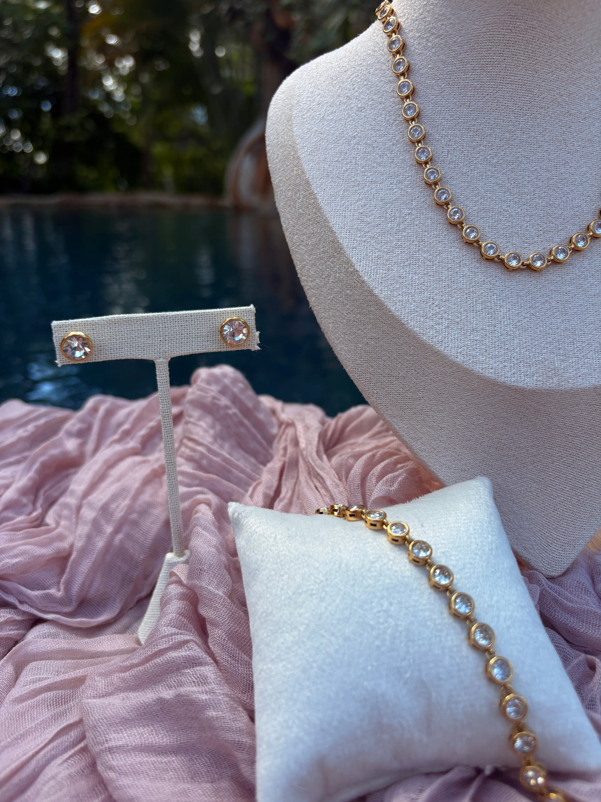 Care: To keep your bezel crystal set shining, avoid water, lotions, perfumes, and harsh chemicals. Store in a soft pouch when not in use and gently wipe with a clean cloth to maintain its sparkle.