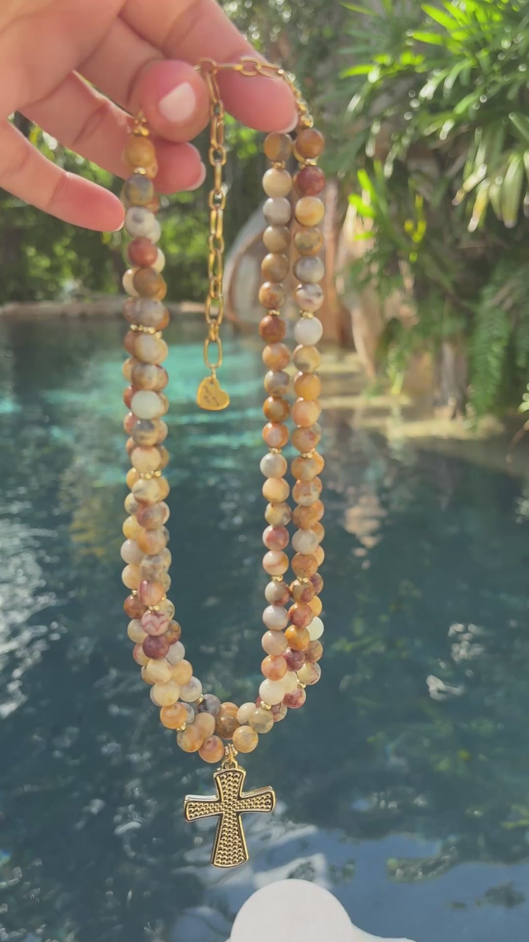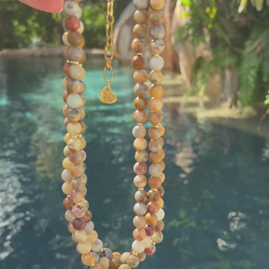 Care: Keep jewelry dry and away from water, perfumes, and lotions, as moisture and chemicals can cause finishes to fade and stones to lose their shine. Some beads are softer or porous and may scratch or absorb oils, so store pieces in a dry place and separate from harder jewelry. Wipe gently with a soft cloth if needed.